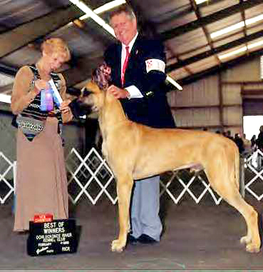 Remy finished his championship at slightly over two years old. He was ovner-handled to all but 1 point. Along the way, Remy was Best of Winners for 4 points at the Great Dane Club of Mid-Florida Specialty on the competitive January circuit.