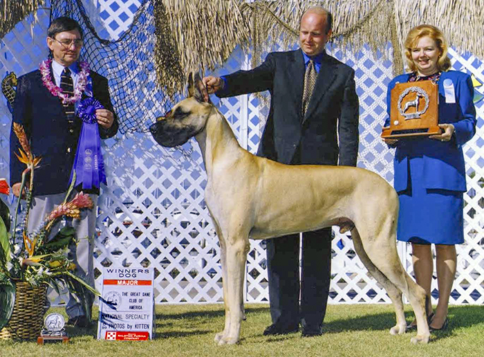 The January circuit began on Friday, January 7, 2000. Dusty was in fine form, going Winners Dog and Best of Winners for a 4 point major. Staying in high geat, Dusty went Reserve Winners Dog to another 4 point major on Saturday and Winners Dog for a 4th major to finish his championship on Sunday, January 8, 2000